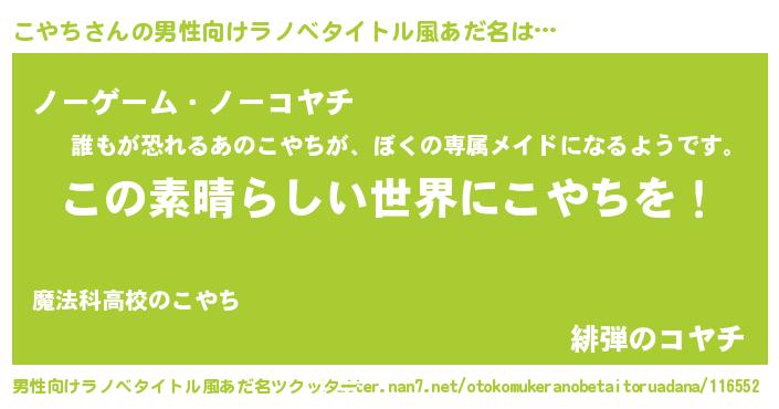 | 胡散臭い通販商品みたいなあだ名 | 『あなたにだけ特別に提供する100年もののヴィンテージワイン…その名も「こやち」』 |