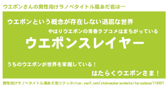 | 伝説のあだ名 | 『聞きしに勝る勇者ウエポン』 |