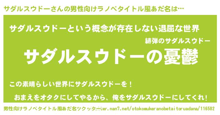 | 胡散臭い通販商品みたいなあだ名 | 『必ず成功する霊験あらたかなお札…その名も「サダルスウドー」』 |