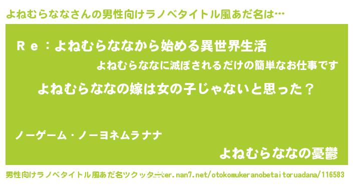 | 女子向けラノベタイトル風あだ名 | 『よねむらなな様がみてる』 |
