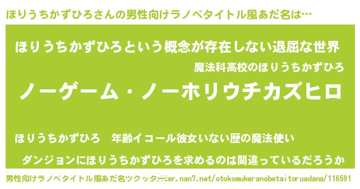 | ヘコむあだ名 | 『ほりうちかずひろ(遠い目)』『ほりっぺ』 |