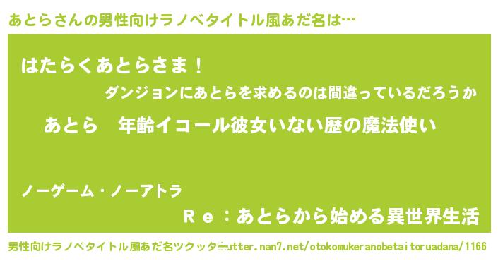| 意味不明あだ名 | 『ニラ科あとら属』『自称あとら』 |