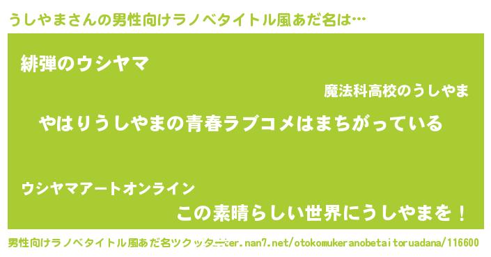 うしやまさんの男性向けラノベタイトル風あだ名をツクッター!