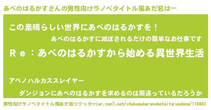 | 女子向けラノベタイトル風あだ名 | 『闇のあべのはるかす』 |