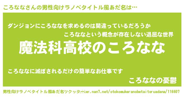 | 意味不明あだ名 | 『自称ころなな』『ペロリンころなな』 |