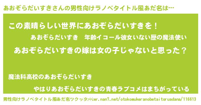| 伝説のあだ名 | 『覚醒した遊び人あおぞらだいすき』 |