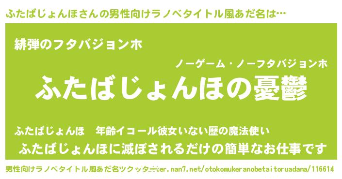 | 女子向けラノベタイトル風あだ名 | 『(仮)ふたばじょんほのやんごとなき事情』 |