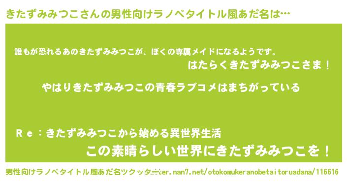 | 女子向けラノベタイトル風あだ名 | 『きたずみみつこの雑貨屋さん』 |