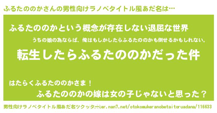 | 胡散臭い通販商品みたいなあだ名 | 『来世でも幸せになれる招き猫…その名も「ふるたののか」』 |
