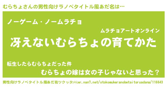 | 女子向けラノベタイトル風あだ名 | 『シンデレラむらちょ家の靴箱館』 |