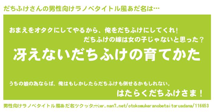 | 胡散臭い通販商品みたいなあだ名 | 『お金では代えられない隕石のかけら…その名も「だちふけ」』 |