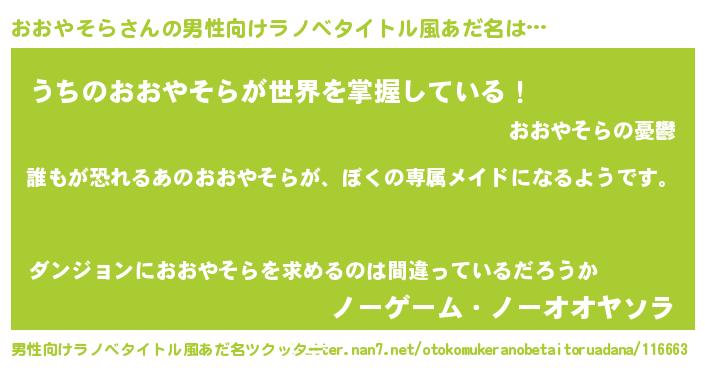 おおやそらさんの男性向けラノベタイトル風あだ名をツクッター!