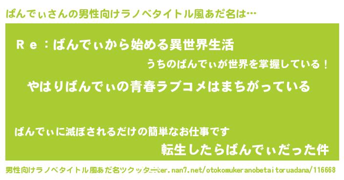 | 胡散臭い通販商品みたいなあだ名 | 『世界が平和になる高級そうな絵画…その名も「ばんでぃ」』 |