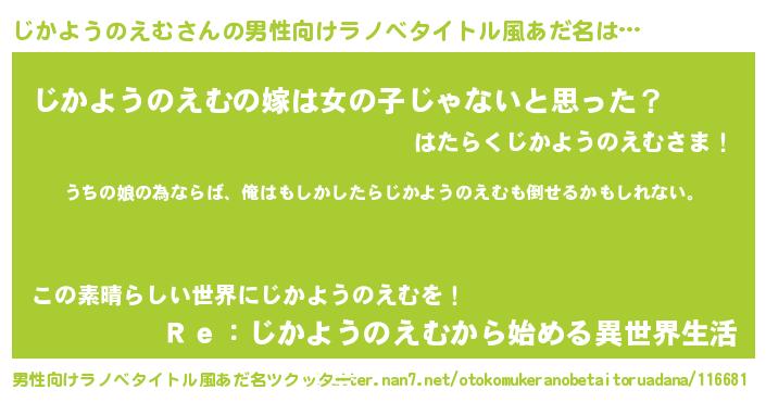 | 女子向けラノベタイトル風あだ名 | 『じかようのえむ伯爵の花嫁』 |