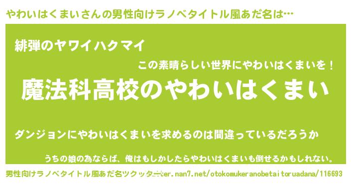 | 胡散臭い通販商品みたいなあだ名 | 『テレビで話題のアガリクス…その名も「やわいはくまい」』 |