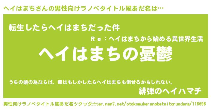 | 女子向けラノベタイトル風あだ名 | 『(仮)ヘイはまちのやんごとなき事情』 |
