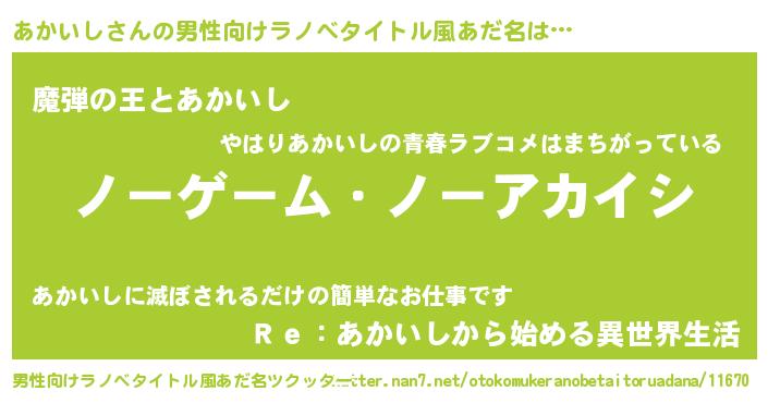 | ヒーロー風カッコイイあだ名 | 『慈愛の使者あかいし』『仮面アカダー』 |