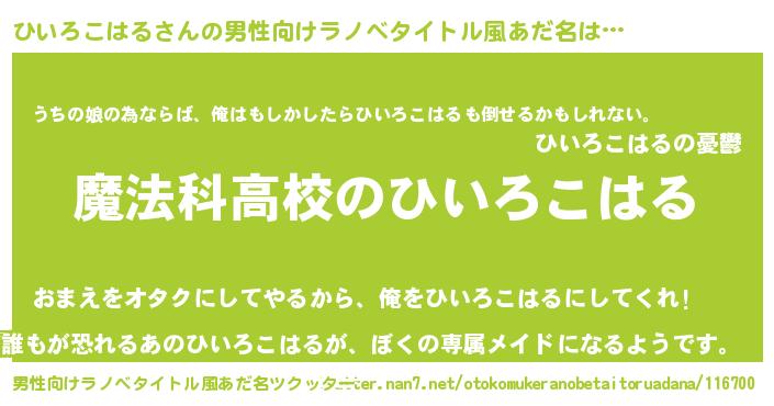 | 女子向けラノベタイトル風あだ名 | 『ひいろこはるアンティーク』 |