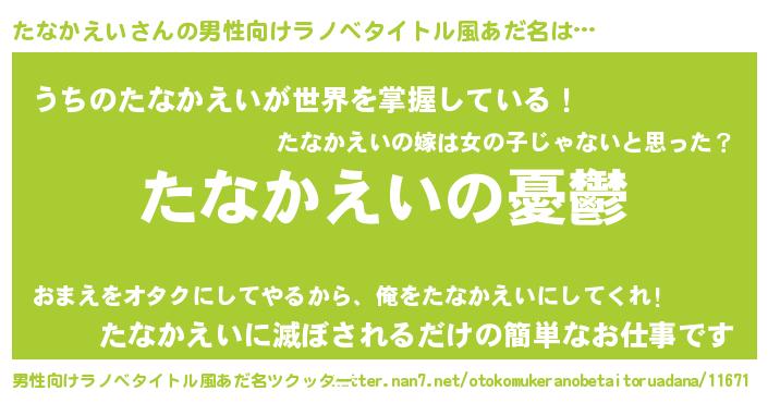 | 女子向けラノベタイトル風あだ名 | 『(仮)たなかえいのやんごとなき事情』 |