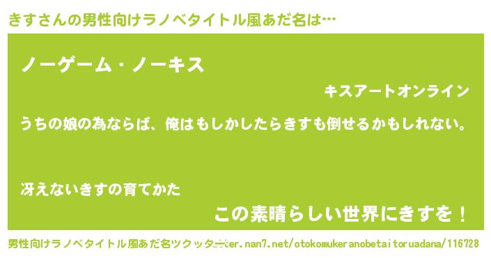 | 女子向けラノベタイトル風あだ名 | 『きすの婚約者』『死神きすの再婚』 |