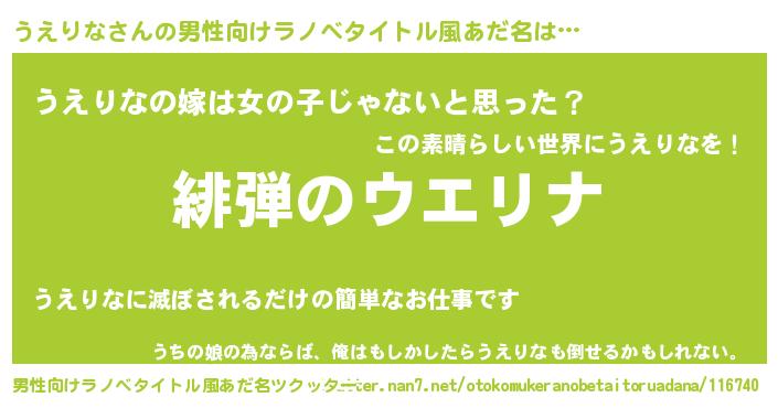 | 女子向けラノベタイトル風あだ名 | 『シンデレラうえりな家の靴箱館』 |