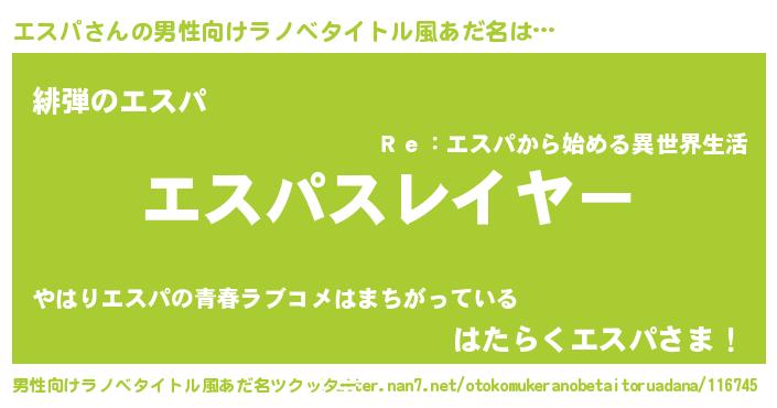 | 料理風あだ名 | 『エスパごはん』『栗とエスパのマフィン』 |