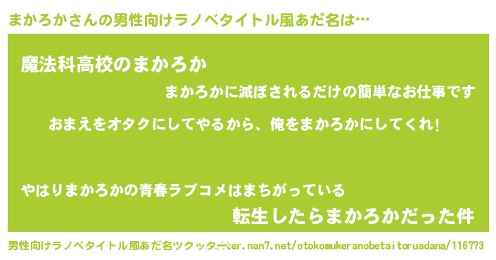 | 女子向けラノベタイトル風あだ名 | 『まかろか夫妻のなれそめ』 |