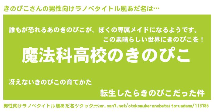 | 女子向けラノベタイトル風あだ名 | 『きのぴこアンティーク』 |