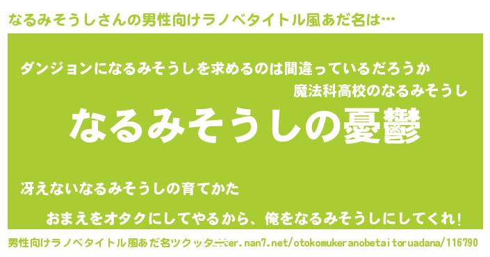 | 女子向けラノベタイトル風あだ名 | 『(仮)なるみそうしのやんごとなき事情』 |