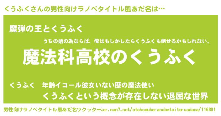 | 意味不明あだ名 | 『自称くうふく』『永久保存くうふく』 |