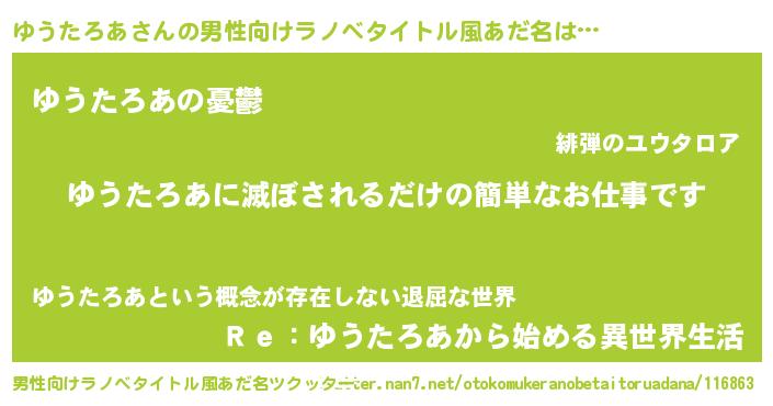 | 意味不明あだ名 | 『ペロリンゆうたろあ』『自称ゆうたろあ』 |