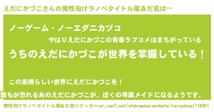 | ヒーロー風カッコイイあだ名 | 『慈愛の使者えだにかづこ』 |