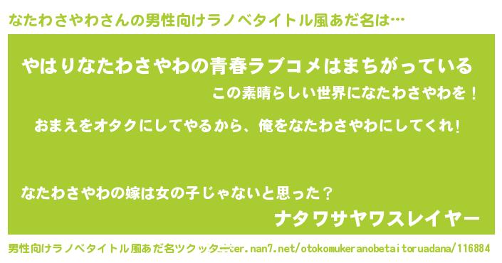 | 胡散臭い通販商品みたいなあだ名 | 『100人中100人が認めたイリジウム磁石…その名も「なたわさやわ」』 |