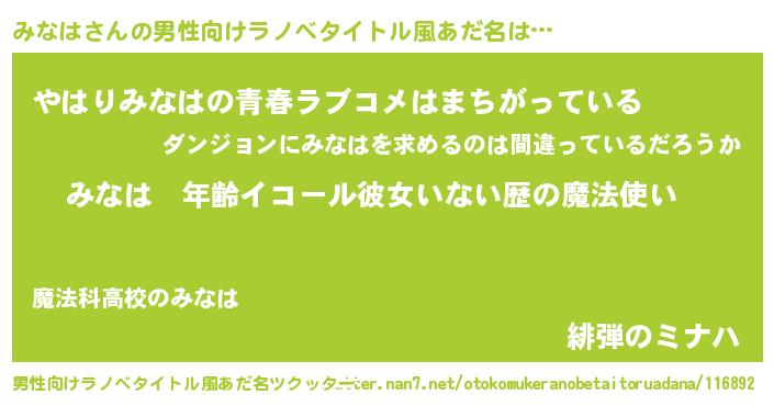 | 胡散臭い通販商品みたいなあだ名 | 『運命の人と巡り会える高級そうな絵画…その名も「みなは」』 |