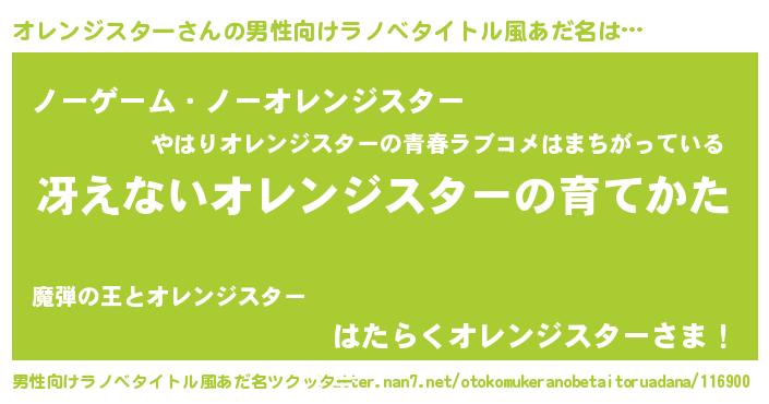 | 女子向けラノベタイトル風あだ名 | 『男装オレンジスターの憂鬱な任務』 |