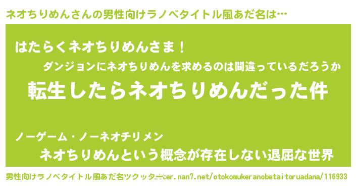 | 胡散臭い通販商品みたいなあだ名 | 『来世でも幸せになれる健康食品…その名も「ネオちりめん」』 |