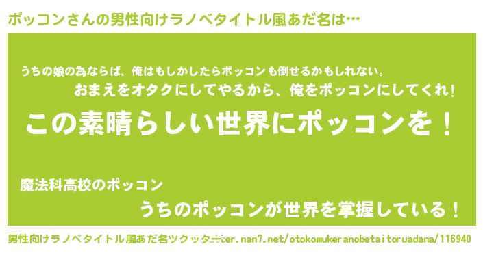 | 女子向けラノベタイトル風あだ名 | 『悪役ポッコンに転生したようですが、知った事ではありません』 |
