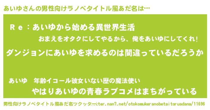 | 女子向けラノベタイトル風あだ名 | 『あいゆは平凡を望む』『あいゆ恋絵巻』 |