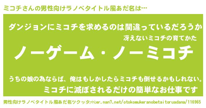 | 女子向けラノベタイトル風あだ名 | 『死神ミコチの再婚』『ミコチの婚約者』 |