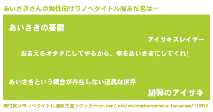 | 女子向けラノベタイトル風あだ名 | 『あいさき夫妻のなれそめ』 |