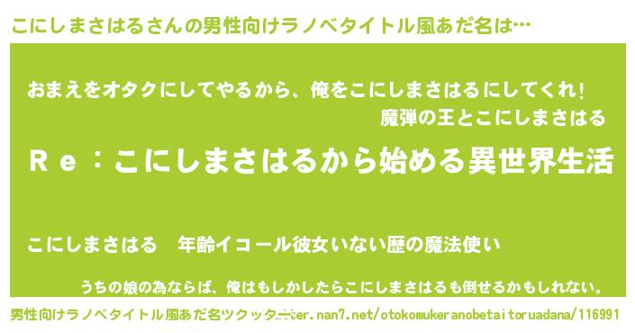 | 女子向けラノベタイトル風あだ名 | 『闇のこにしまさはる』 |