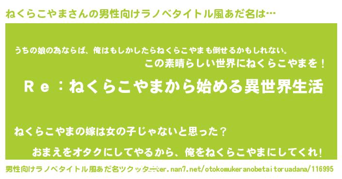 | 意味不明あだ名 | 『自称ねくらこやま』 |