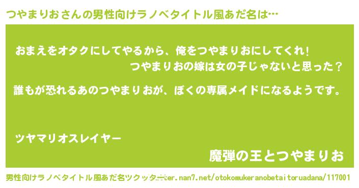 | 女子向けラノベタイトル風あだ名 | 『異世界でカフェつやまりおを開店しました。』 |
