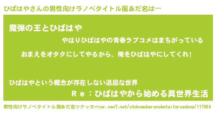 | 女子向けラノベタイトル風あだ名 | 『ひばはや恋絵巻』『闇のひばはや』 |