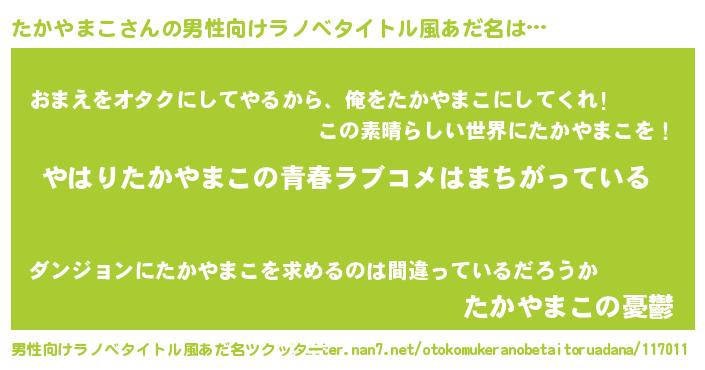 | 意味不明あだ名 | 『たかやまこフォーエバー』 |