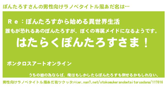 | 意味不明あだ名 | 『自称ぽんたろす』『永久保存ぽんたろす』 |