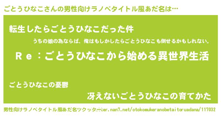 | 意味不明あだ名 | 『自称ごとうひなこ』 |