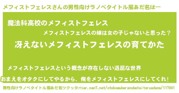 | ヘコむあだ名 | 『メフを』『メフィストフェレス(笑)』 |