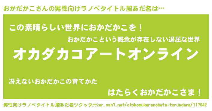 | 胡散臭い通販商品みたいなあだ名 | 『億万長者になれるブレスレット…その名も「おかだかこ」』 |