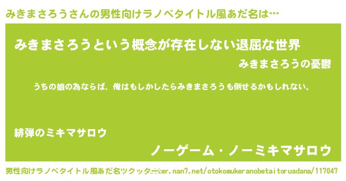 | ファンタジー風あだ名 | 『エターナルミキマサロウー』 |